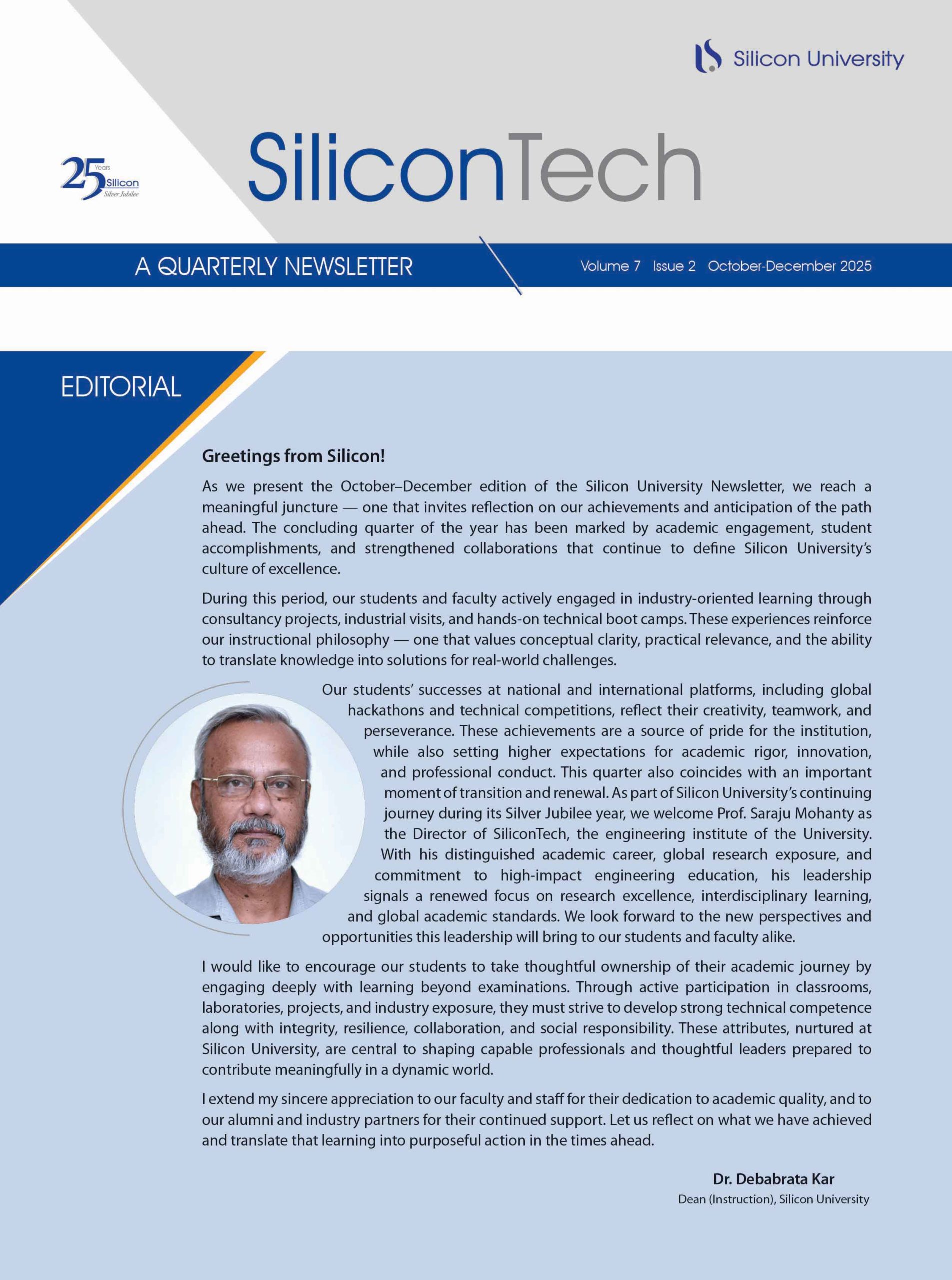 Silicon publishes three different quarterly publications – the SiliconTech Newsletter, SLATE, and Digital Digest. The SiliconTech newsletter brings out information and features on all activities in the campus for all the stakeholders.